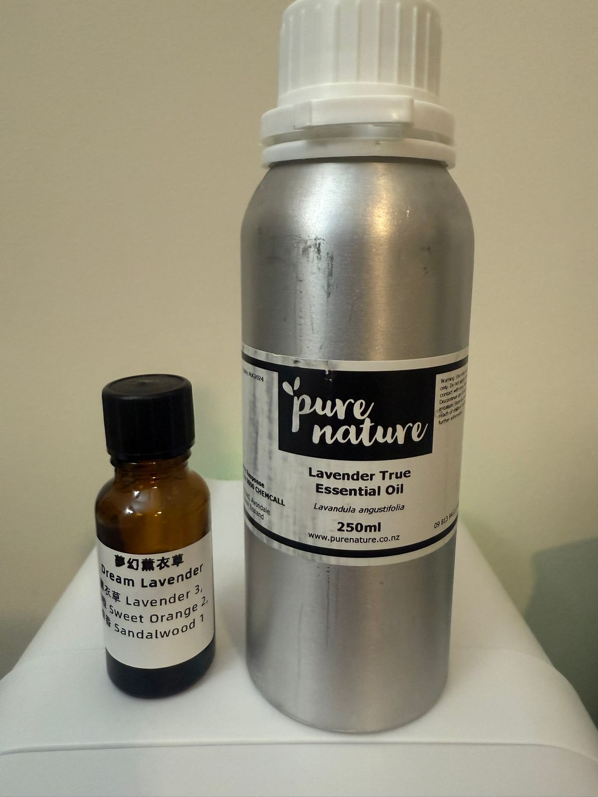 Lavender 'New Zealand': A rare, locally grown cultivar ('Avice Hill') said to be hypoallergenic due to its low levels of Linalool. Grown spray-free in Canterbury. Premium, pure, aromatherapy grade Lavender oil.