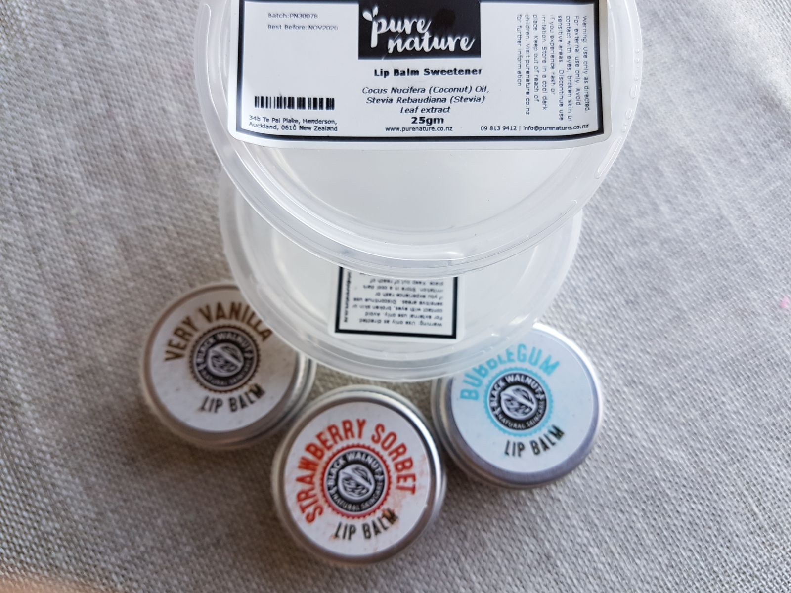 A unique, sugar-free sweetening option perfect for lip balms, lip sticks and glosses. Our lip balm sweetener is made from organic stevia and coconut oil and is ideal to combine with lip balm flavour oils.