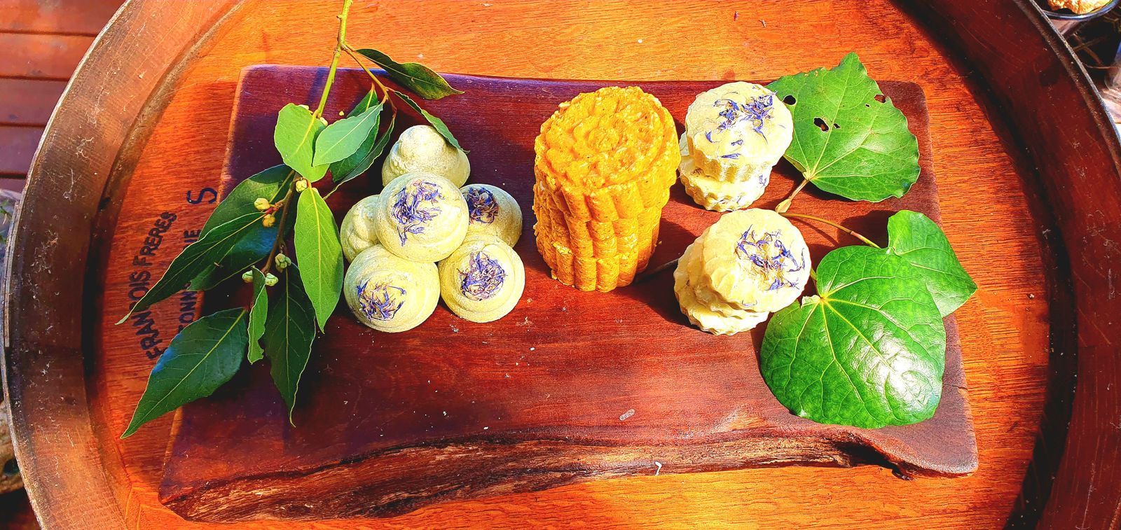Basil, Bergamot, Clary sage, Geranium, Ginger, Jasmine, Lavender, Petitgrain,