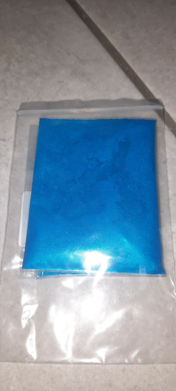 A beautiful, vibrant blue. A little goes a long way. Great quality. A finely milled and smooth powder
