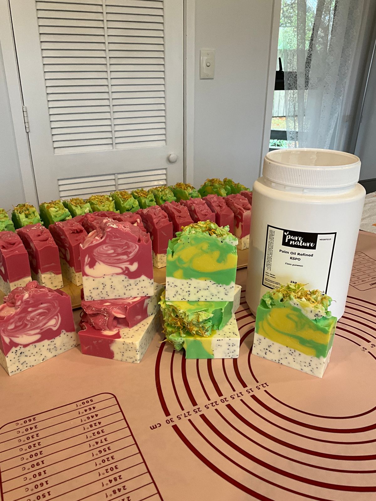 Palmitic Acid contributes hardness and a stable creamy lather to soap whilst Oleic acid makes soap conditioning and moisturising.