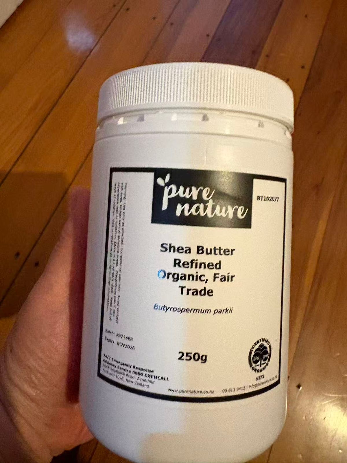 Shea butter is obtained from the seeds of the Karite tree (Butyrospermum parkii) which is common in several African countries. This soft, pliant 'butter' is pressed from the certified organic seeds and then purified for use used for soaps, cosmetics and toiletries.